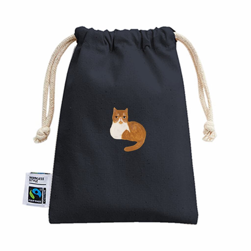 「フェアトレードコットン巾着(S)」は、国際フェアトレード認証ラベル付きの