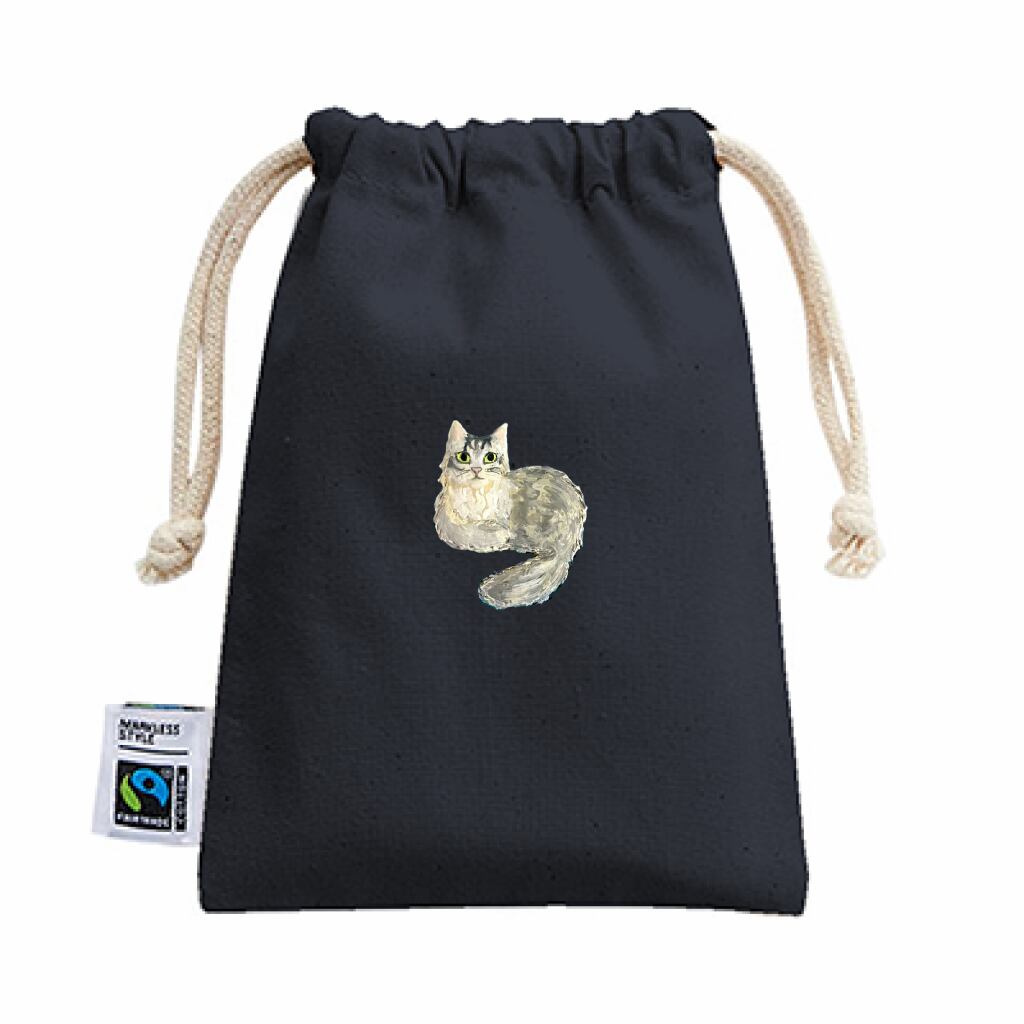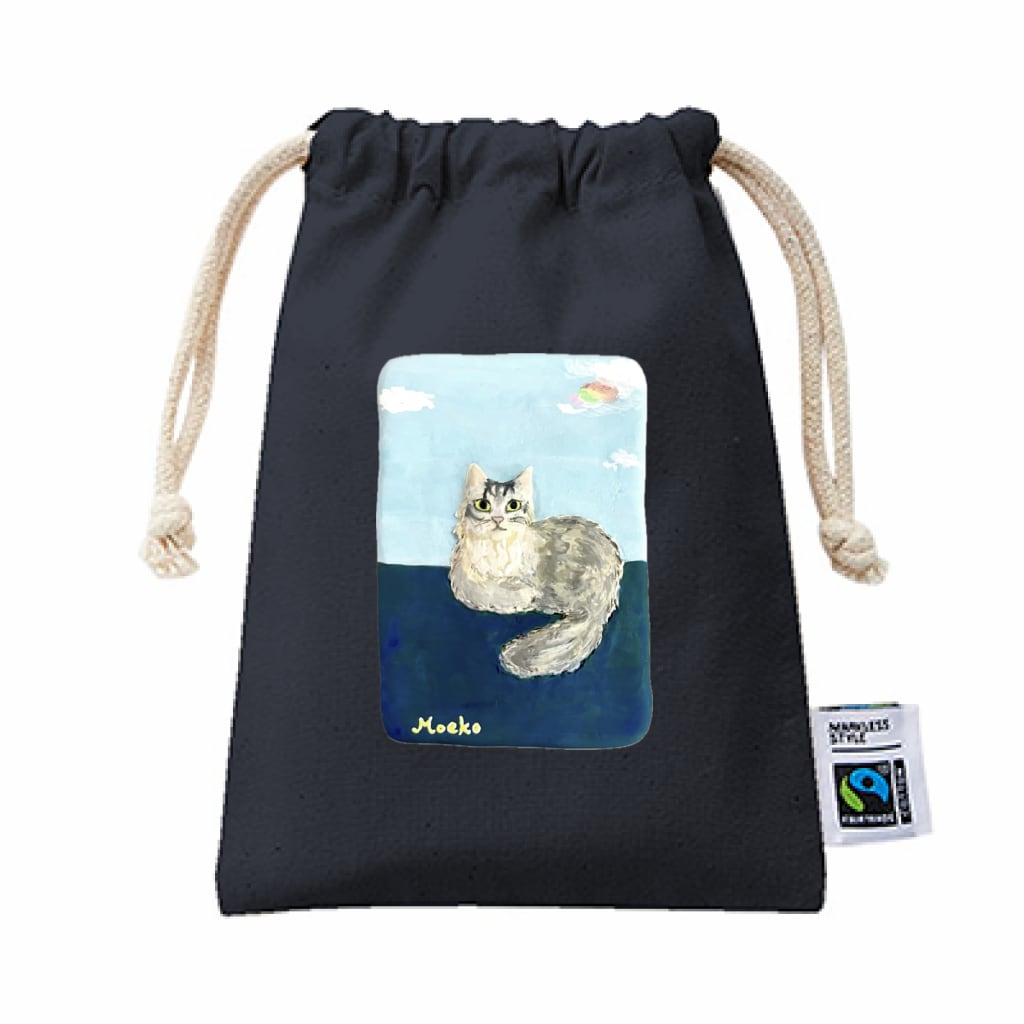 「フェアトレードコットン巾着(S)」は、国際フェアトレード認証ラベル付きの