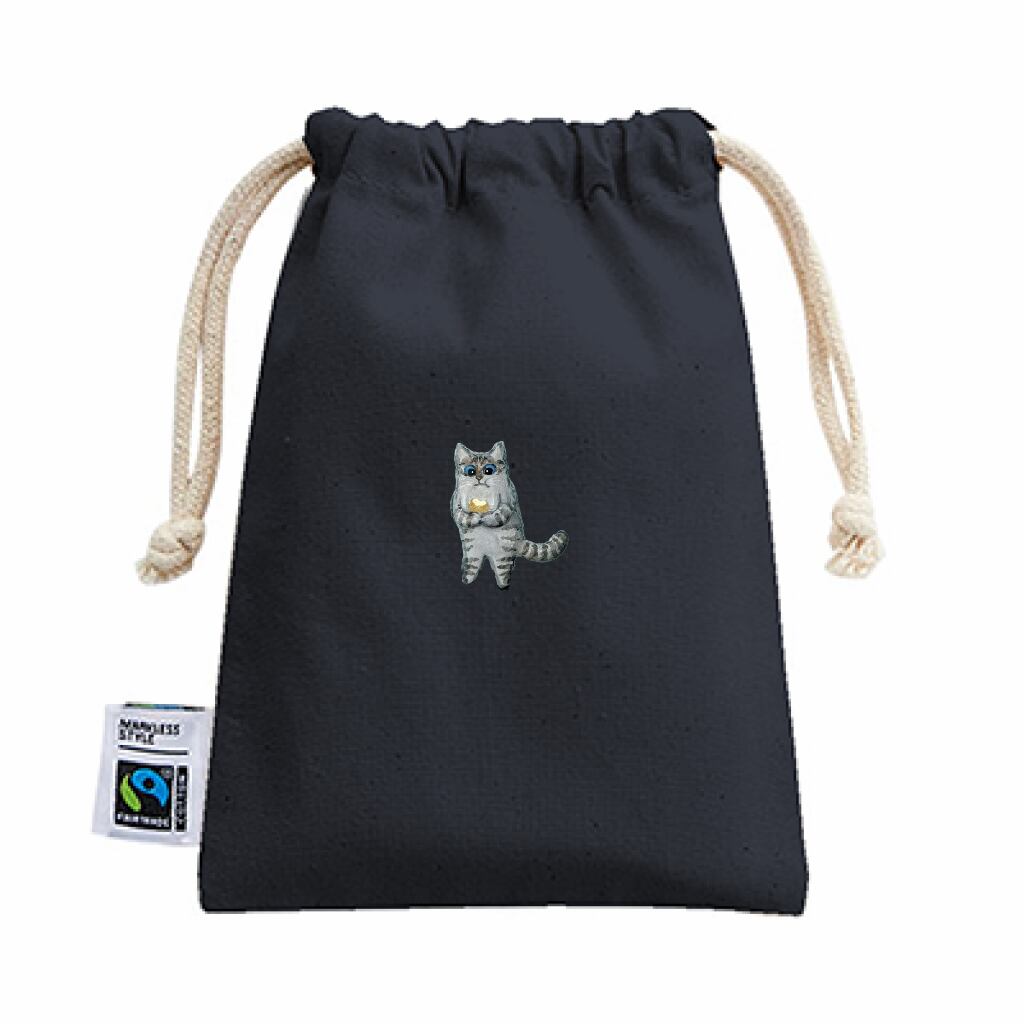 「フェアトレードコットン巾着(S)」は、国際フェアトレード認証ラベル付きの