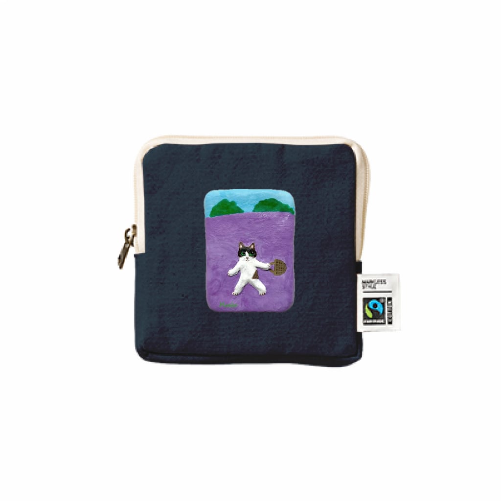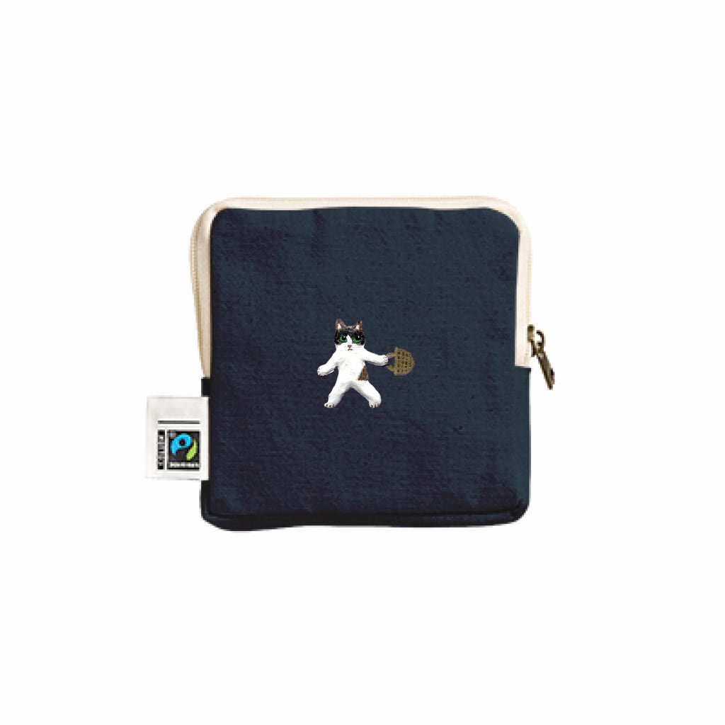 国際フェアトレード認証ラベル付きの地球にやさしいエコなスクエアポーチ。