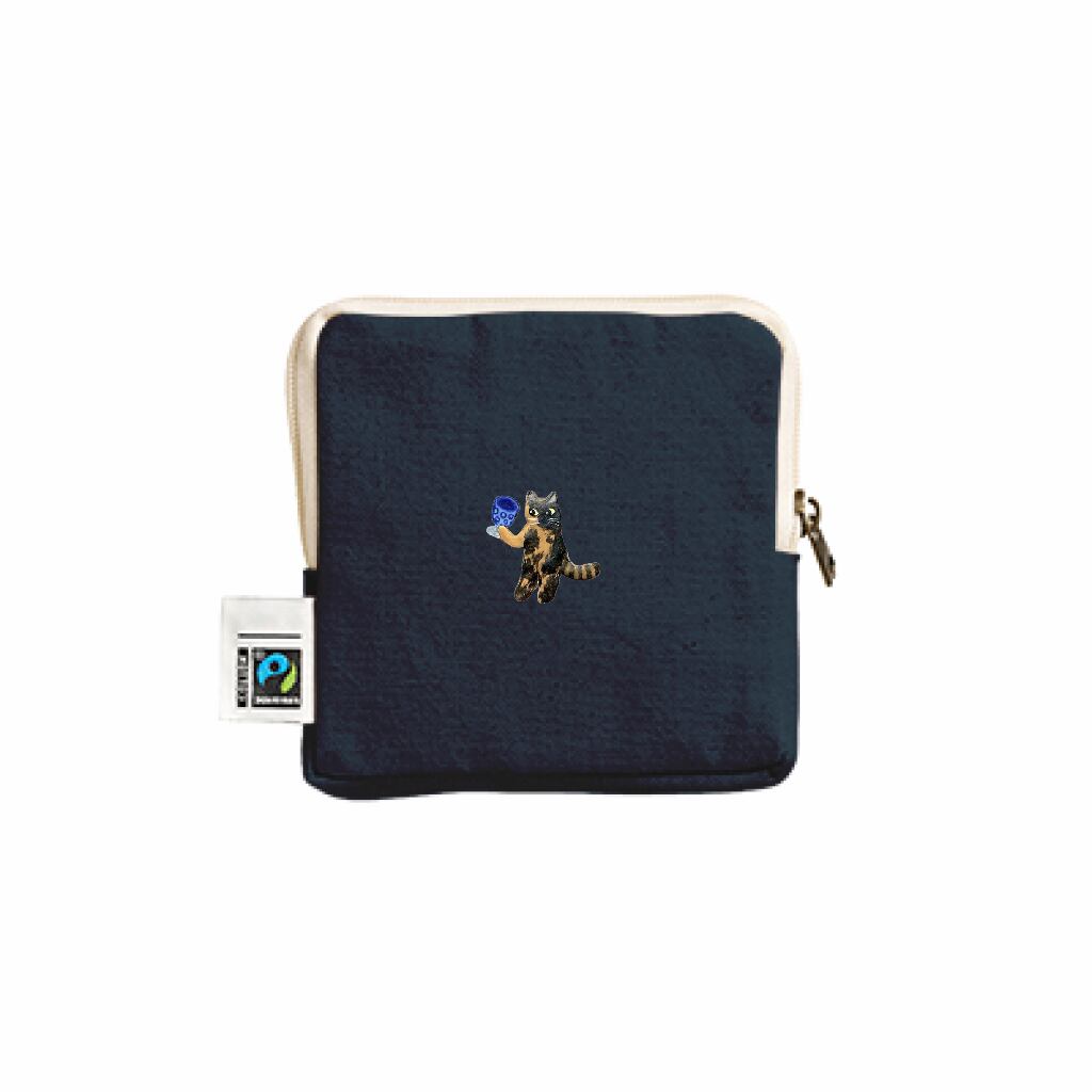 国際フェアトレード認証ラベル付きの地球にやさしいエコなスクエアポーチ。