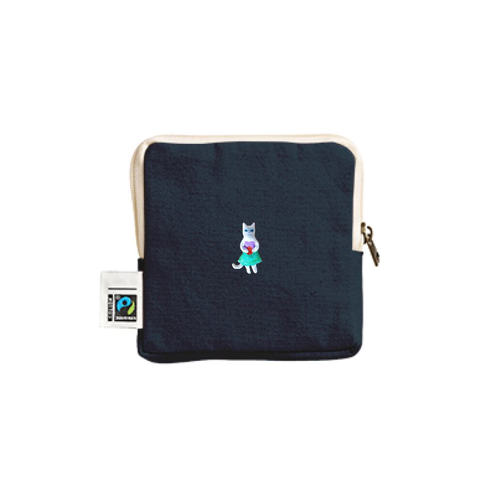 国際フェアトレード認証ラベル付きの地球にやさしいエコなスクエアポーチ。